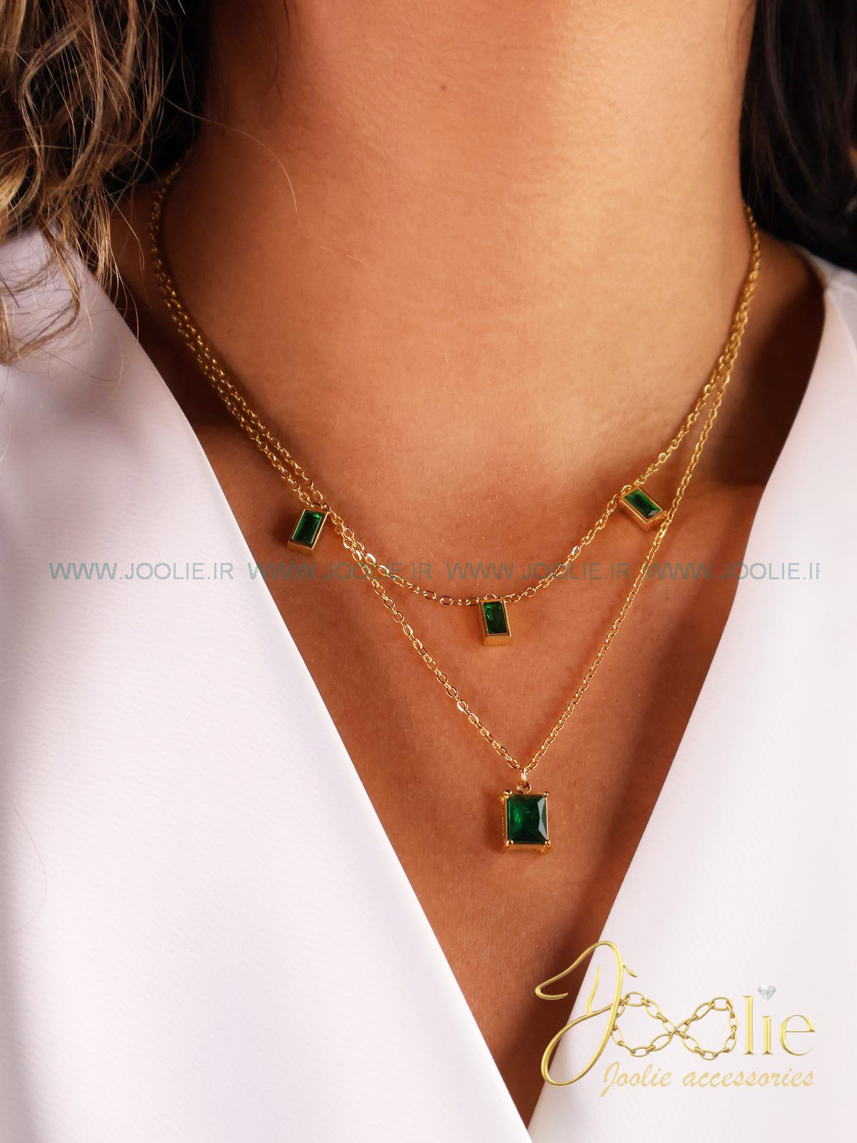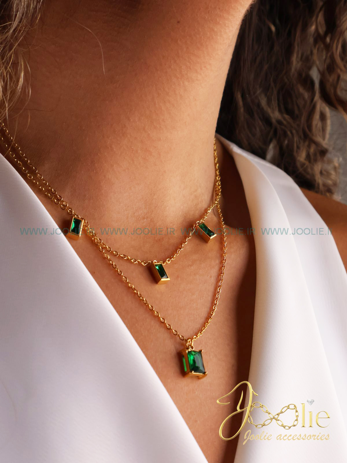 • این گردنبند زیبا با توجه به وزن سبک و توازن محل قرارگیری سنگ های سبز باعث میشود که به زیبایی بر روی گردن شما بنشیند و زیبایی فوق العاده ای به استایل شما هدیه دهد. با توجه به ظرافت کار و همچنین تراش های خوش فرم سنگ ها پیشنهاد میشود این گردنبند را همراه با گوشواره های آویزی نسبتا بلند استفاده نمایید که با توجه به دو ردیفه بودن گردنبد قد و بالا تنه شما را کشیده تر و بلند تر نشان میدهد.