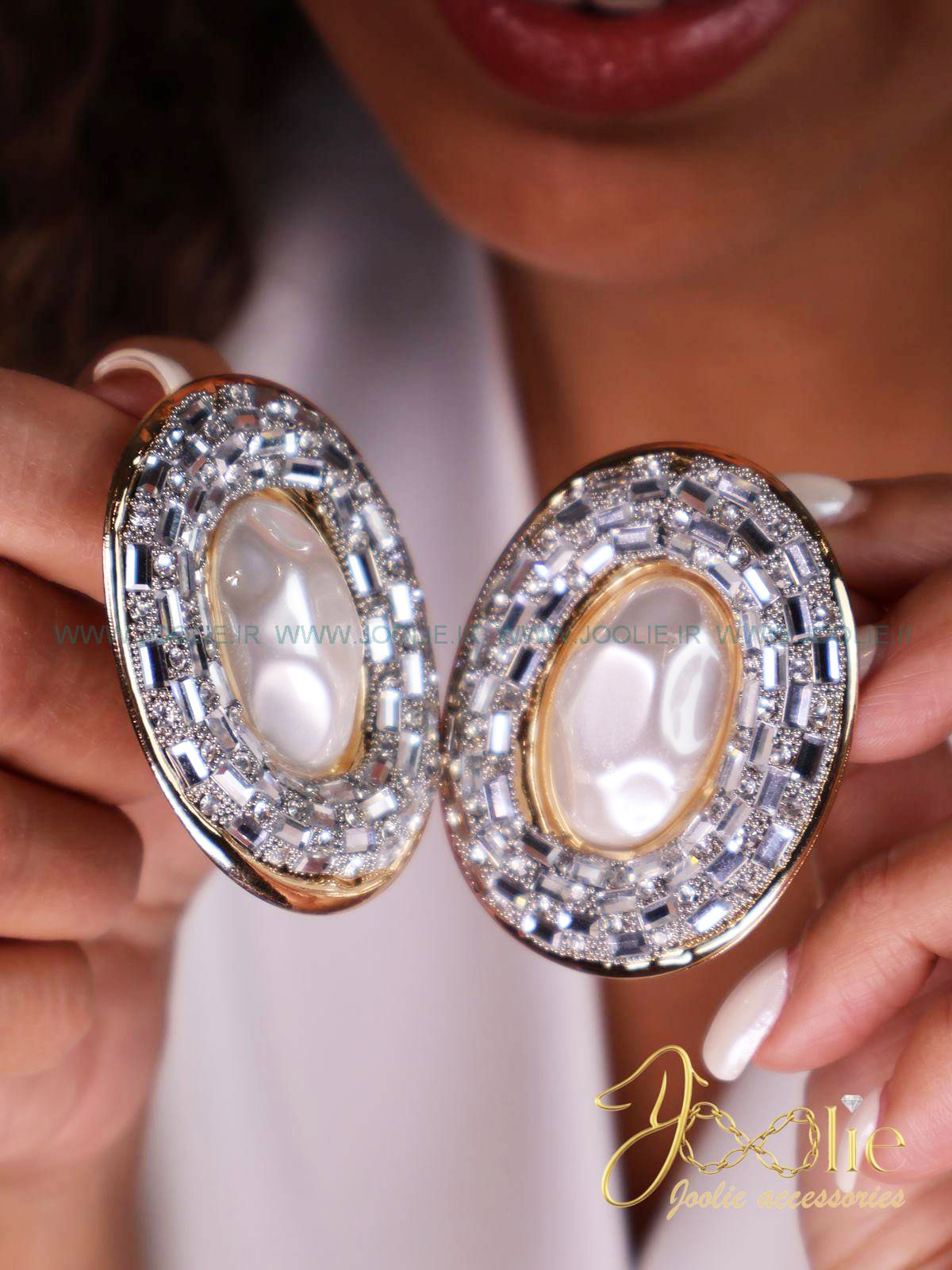 • اکسسوری میتواند تمام استایل شما رو تحت تاثیر قرار بدهد، با وجود ابعاد کوچک اما اکسسوری ها بزرگترین تاثیر را بر روی استایل و ظاهر میگذارند.  این گوشواره مثال خوبی برای این موضوع است. حالت دفرمه  قطعه سفید درون این محصول باعث شده تا جلوه خاص در این محصول رقم بخوره. تراش ظریف و چشم نواز بر روی محصول ظاهری همانند سنگ های قیمتی را رقم زده تا برای استفاده در کنار لباس های شب و مهمانی بسیار مناسب باشد و به علت جلوه ای همانند زیورآلات طلا و جواهر، درخشش شما را در هر جمعی بیشتر کند.