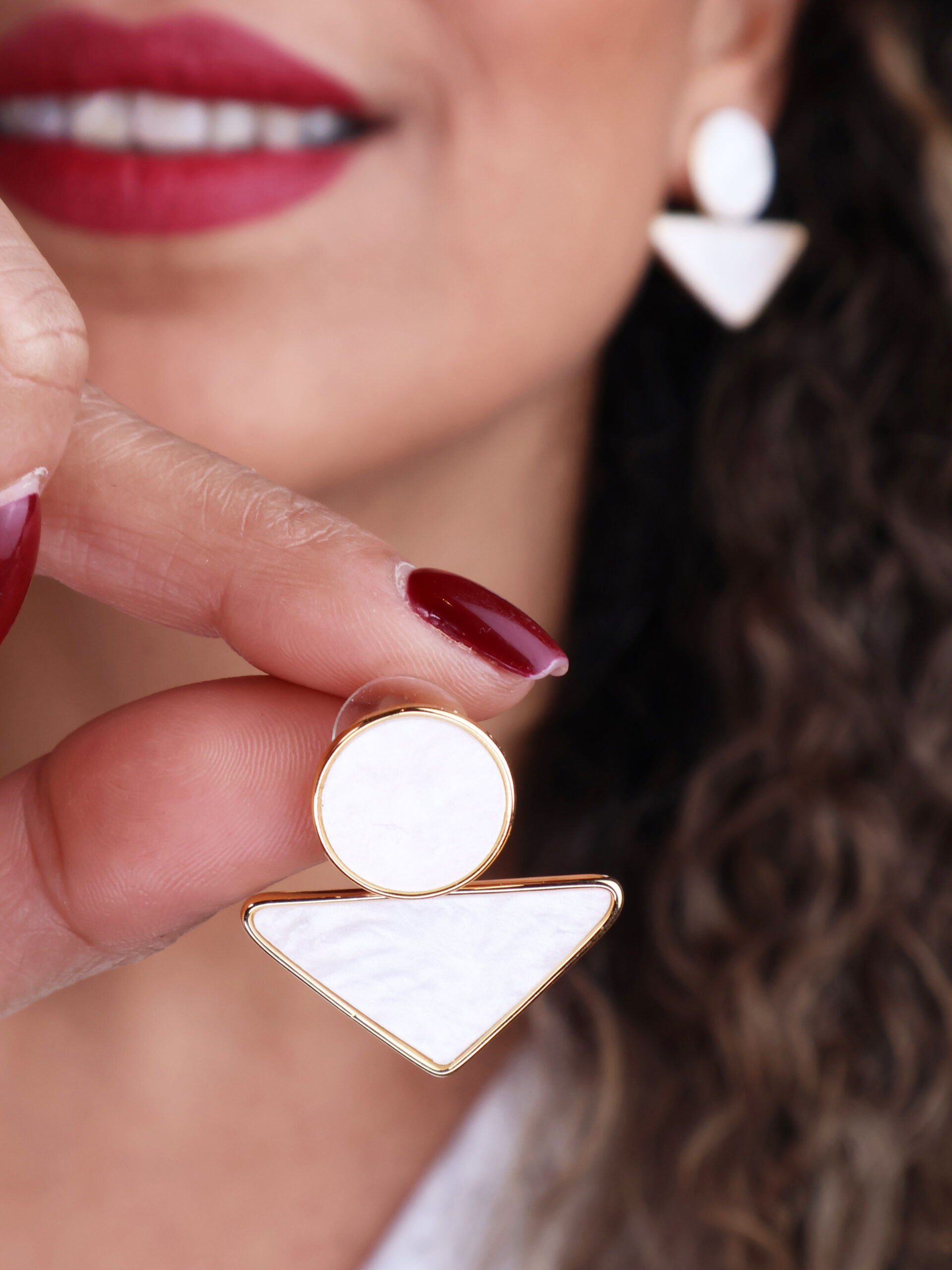 • اشکال هندسی کنار هم سازنده زیبایی این دنیا هستند.کیفیت بالای ساخت و خلاقیت در ایجاد شکل دایره و مثلت این محصول با درخشش بالای رنگ سفید میناکاری باعث به وجود امدن یک محصول فشن استایل کامل شده. اگر جسارت تزریق خلاقیت و خاص بودن را به استایلتون دارید خرید این محصول رو از دست ندید