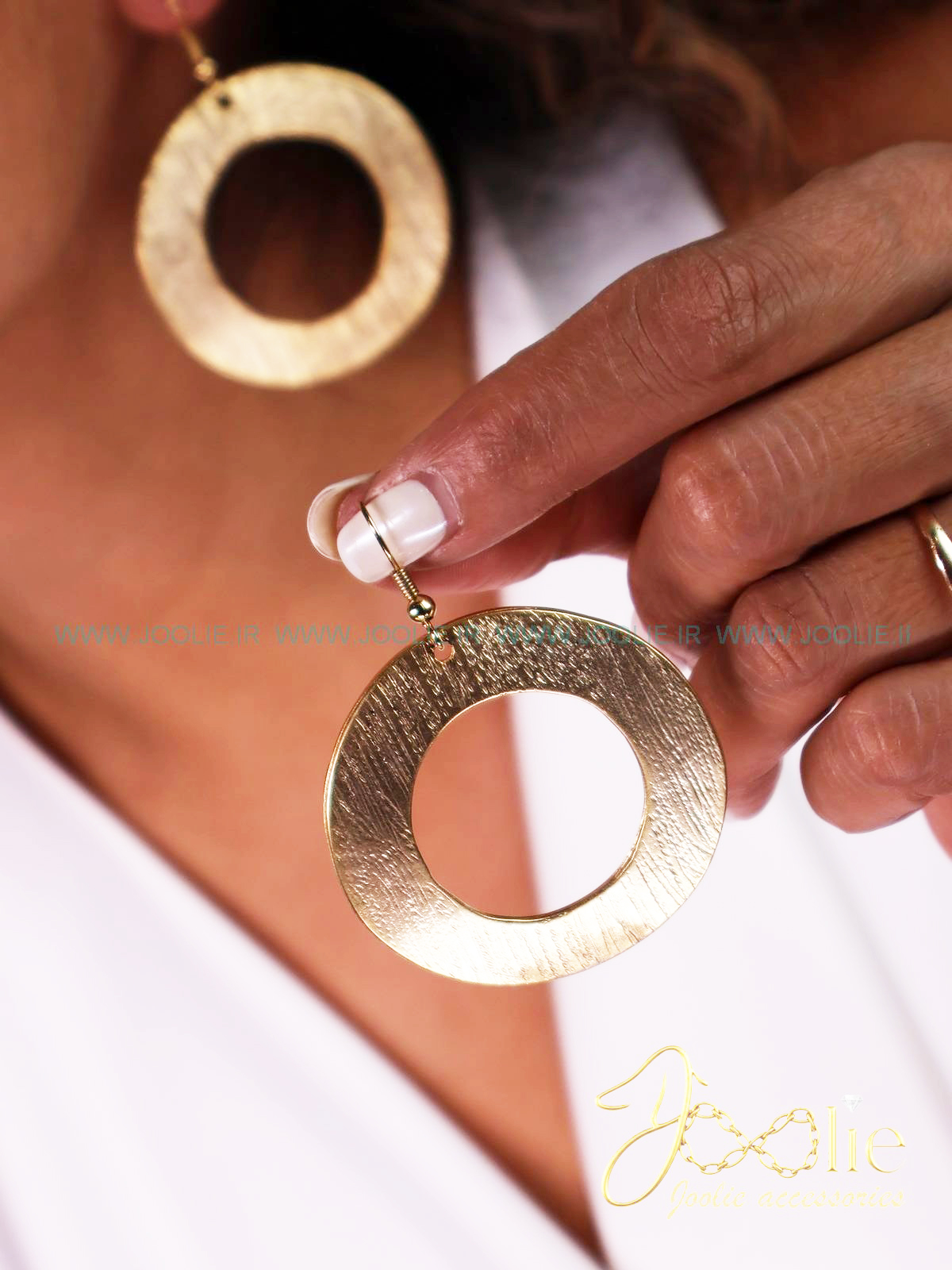 • این گوشواره حلقه‌ای با طراحی مینیمال و مدرن، فرم دایره‌ی توخالی دارد که نماد سادگی و تعادل است. سطح آن دارای بافت برس‌خورده‌ی ظریف است که جلوه‌ای مات و لوکس ایجاد می‌کند و نور را نرم و یکنواخت بازتاب می‌دهد. قطر گوشواره حدود ۳ تا ۴ سانتی‌متر است و ضخامت آن به‌گونه‌ای طراحی شده که هم دیده شود و هم سبک و راحت باشد. این مدل انتخابی عالی برای استایل‌های روزمره شیک، مینیمال و نیمه‌رسمی است. بهترین ترکیب را با لباس‌های ساده، یقه‌باز یا یقه‌هفت و موهای جمع یا پشت گوش زده‌شده ایجاد می‌کند