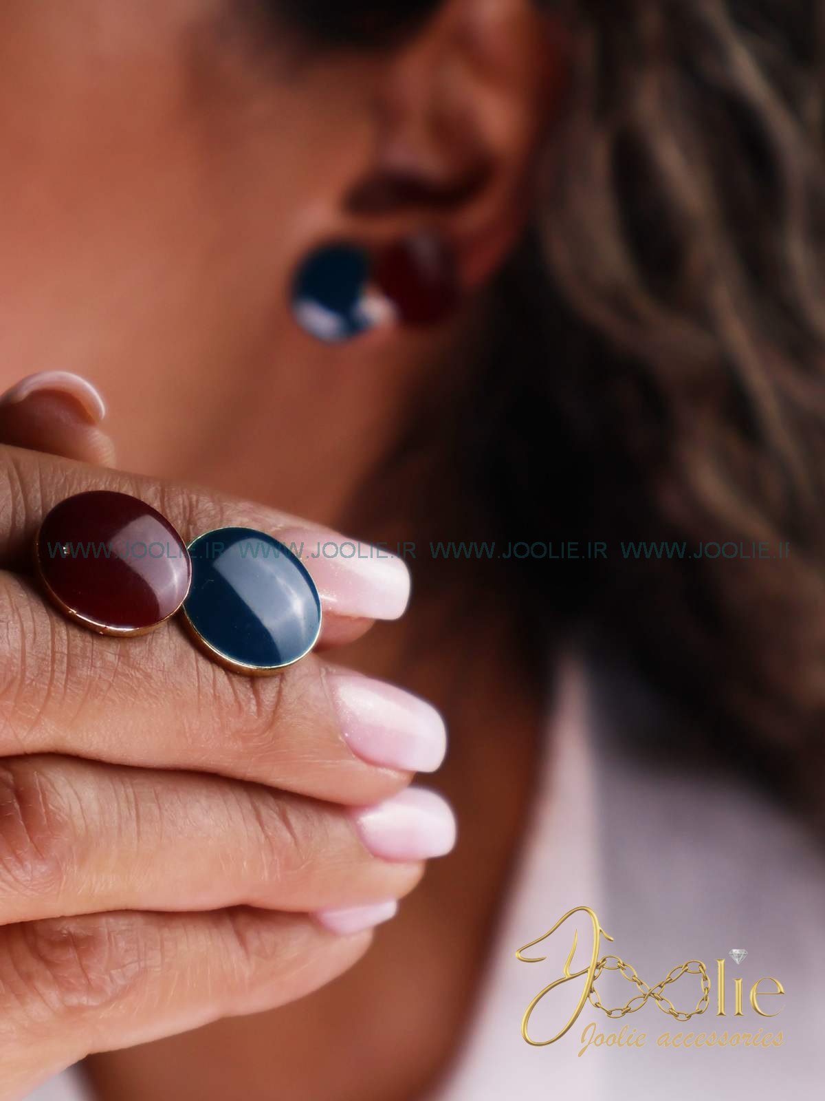 گوشواره زنانه میناکاری مدل دکمه کد E1156